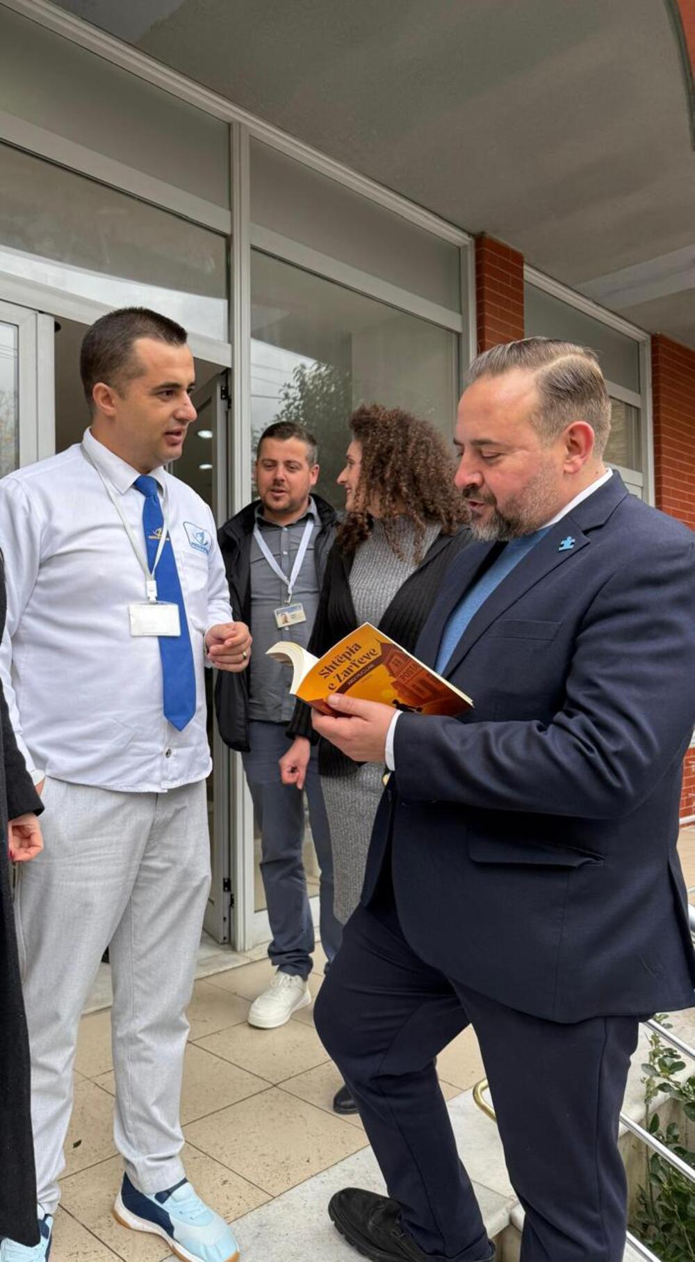 Vizita nisi me një surprizë të këndshme, ku z. Xhafaj u takua me postierin Ardi Muçllari, autor i librit “Shtëpia e Zarfeve”, një vepër që pasqyron me ndjeshmëri dhe realizëm botën e postierëve dhe përkushtimin e tyre në shërbim të komunitetit.